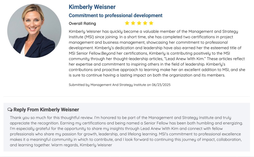 - Author of Lead Anew: Insights and Growth, a weekly newsletter about leadership in your second season.